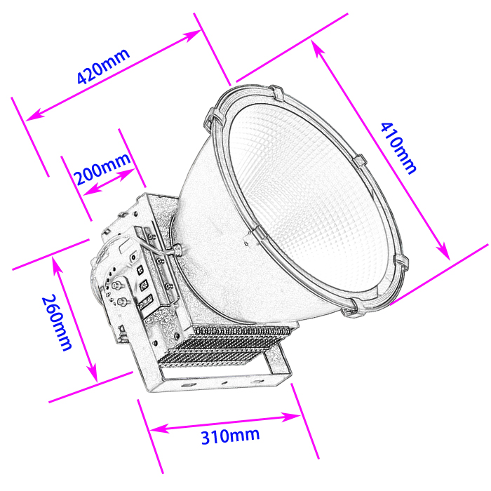 | 適用場合 | 各類施工場地照明,塔吊照明,各類場地(球場、碼頭、廣場、貨場等)照明,高桿燈頭,戶外景觀亮化(樓體亮化等)以及一些高粉塵場合照明、加油站照明等等 |