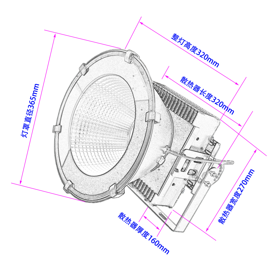 | 適用場合 | 各類施工場地照明,塔吊照明,各類場地(球場、碼頭、廣場、貨場等)照明,高桿燈頭,戶外景觀亮化(樓體亮化等)以及一些高粉塵場合照明、加油站照明等等 |